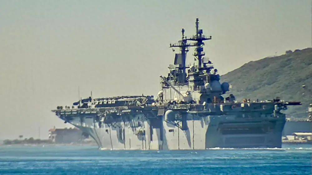 然而,就在特朗普外交上表现出示弱姿态的同时,五角大楼却传来最新消息:美国拳师号两栖攻击舰、波特兰号和康斯托克号船坞登陆舰,搭载第11海军陆战队远征部队,组成一支新的两栖戒备群,正开拔前往中东。其中,拳师号排水量达4万吨,可停靠F-35B隐身战机及各型号武装直升机,船上约有2500名士兵。而在此前3月14日,部署在日本佐世保海军基地的的黎波里号两栖攻击舰,也收到了五角大楼命令,与新奥尔良号和圣迭戈号船坞运输舰组成编队,搭载第31海军陆战队远征部队奔赴中东。被称作闪电航母的的黎波里号排水量4.5万吨,舰载机与拳师号不相上下,士兵数量约2200人。